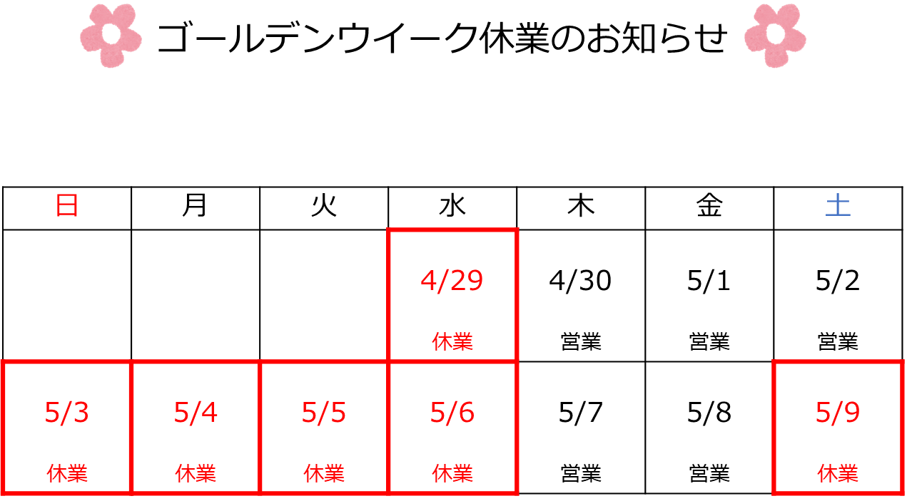 誠に勝手ながら、以下の期間を休業とさせていただきます。