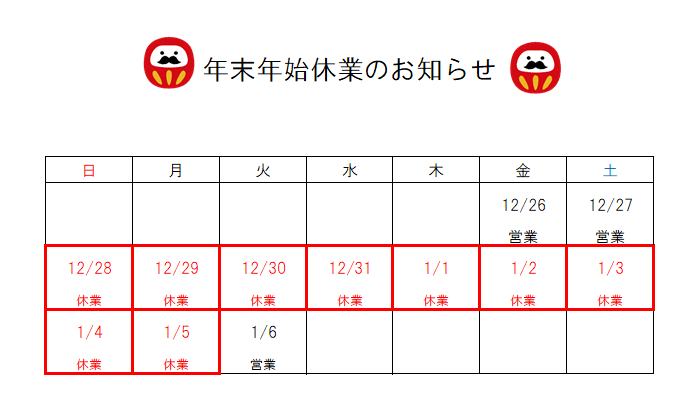 臨時休業のお知らせ 2025年10月29日 最終更新日時 : 2025年10月29日 currentplan 平素より格別のご高配を賜り、誠にありがとうございます。 誠に勝手ながら、11月21日(金)は臨時休業とさせていただきます。 ご迷惑をおかけいたしますが、よろしくお願いいたします。